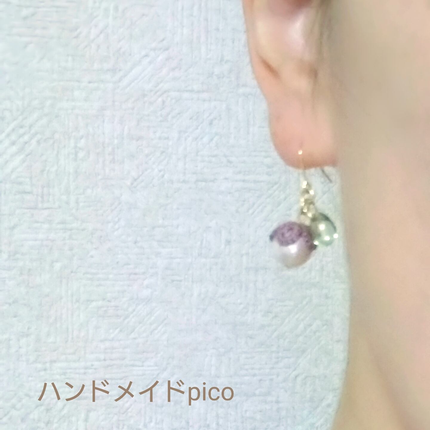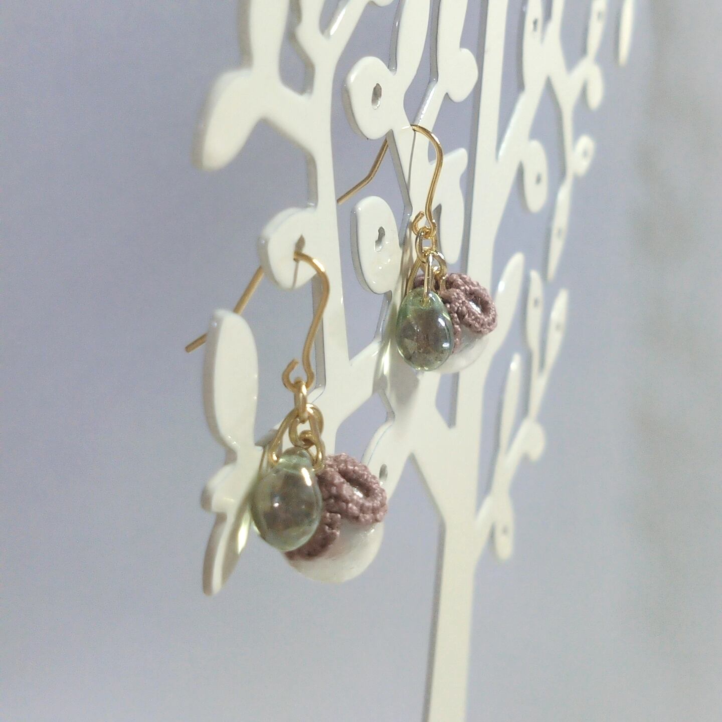 横には黄緑のチェコビーズを添えて、葉っぱのような爽やかなアクセントに