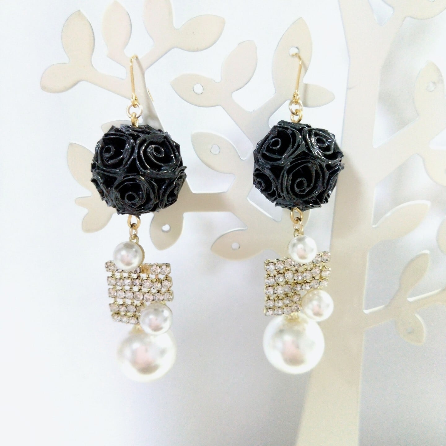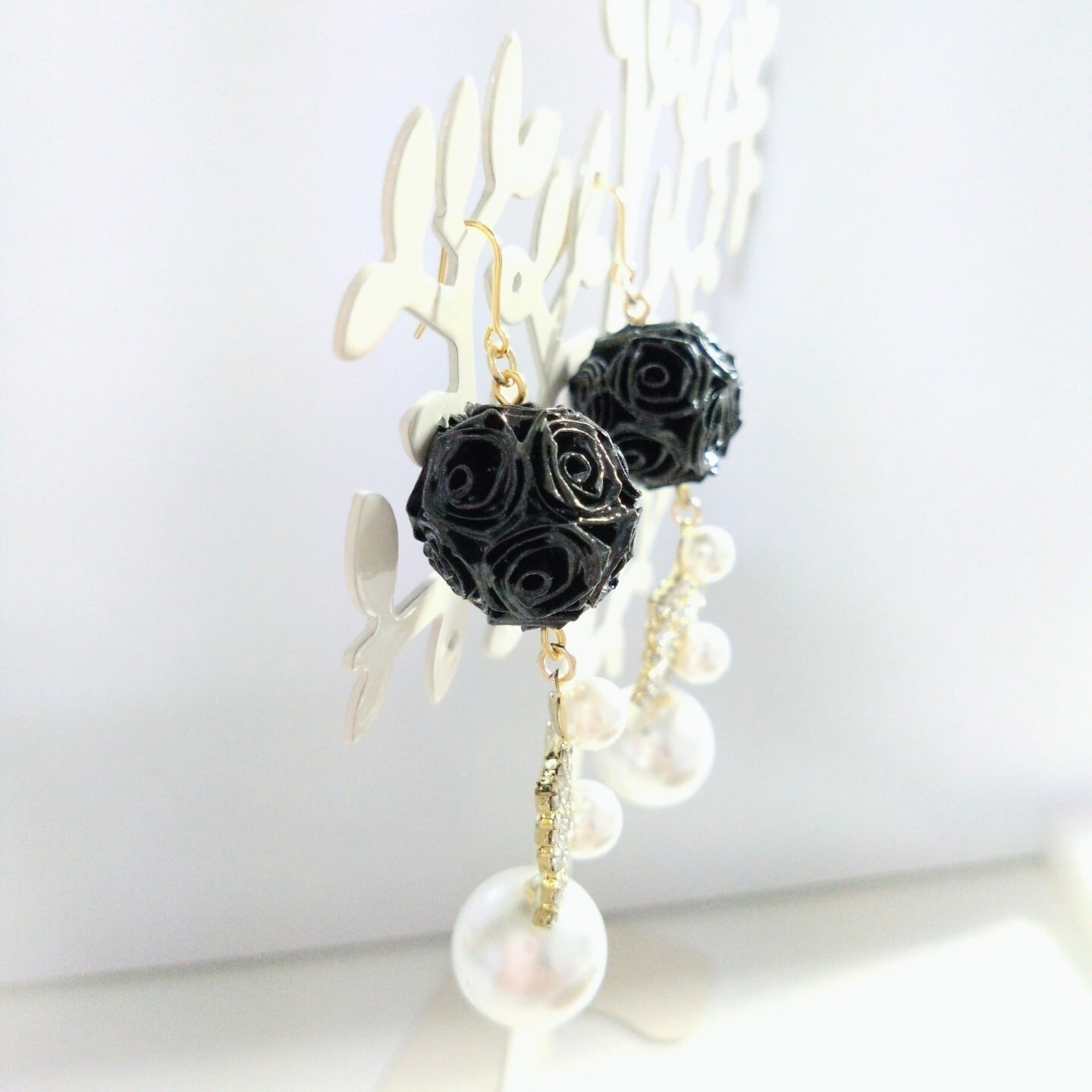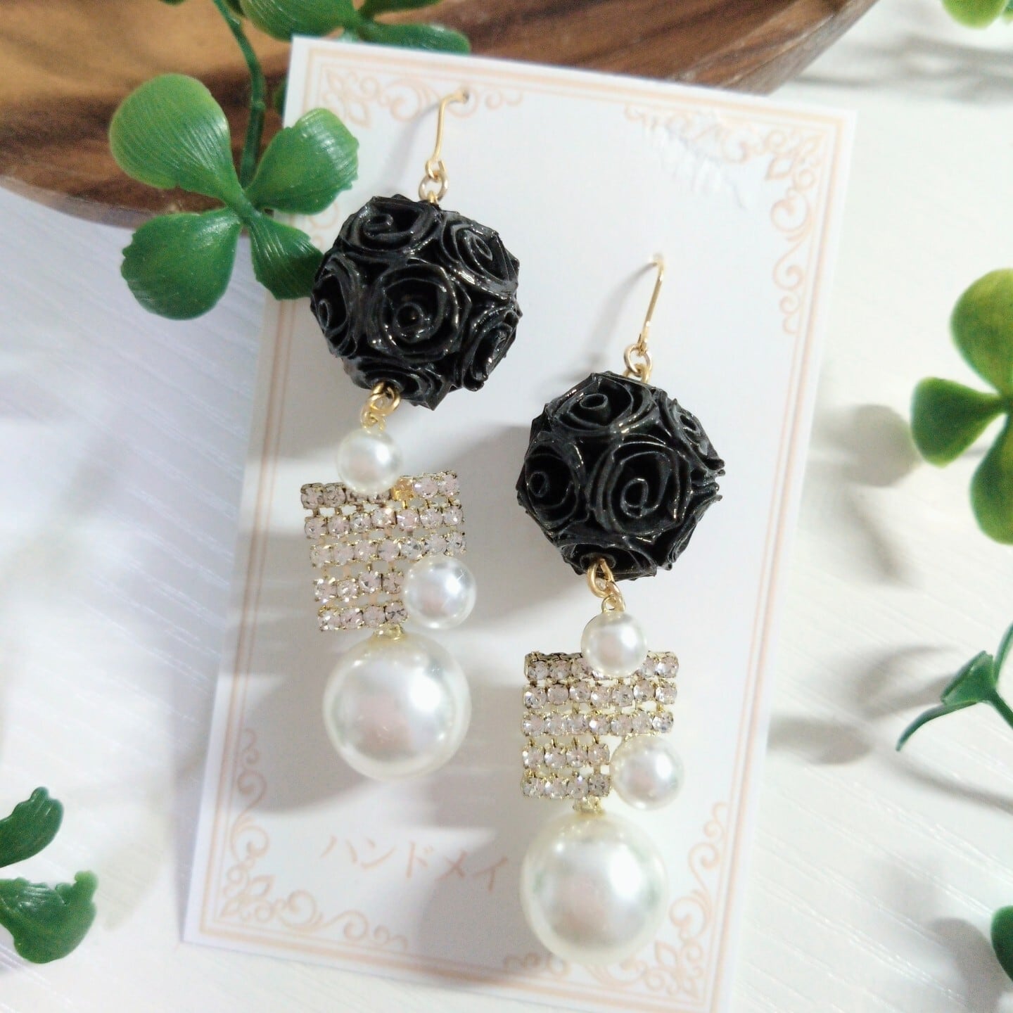 黒のロザフィを主役にした華やかなピアス