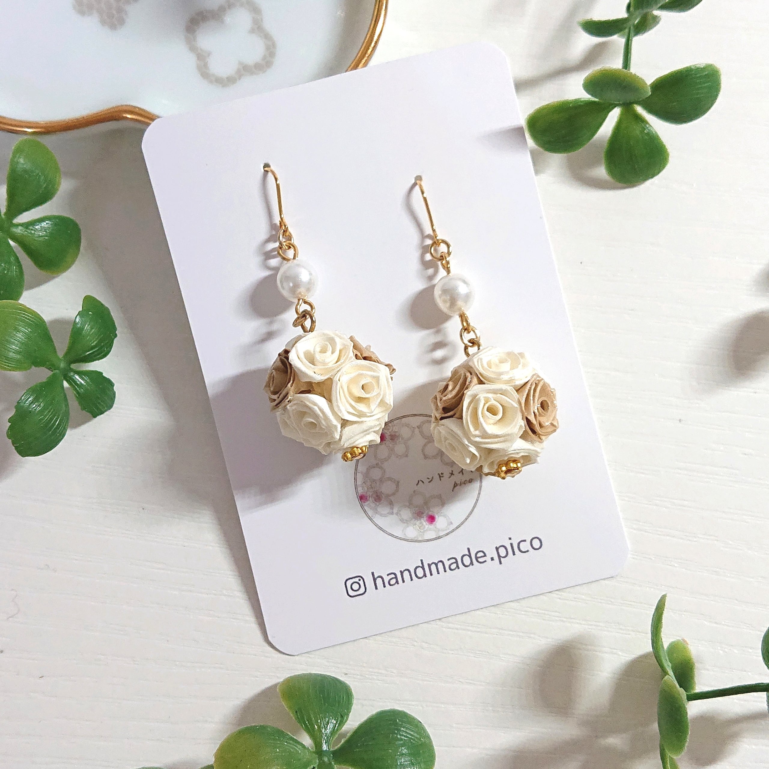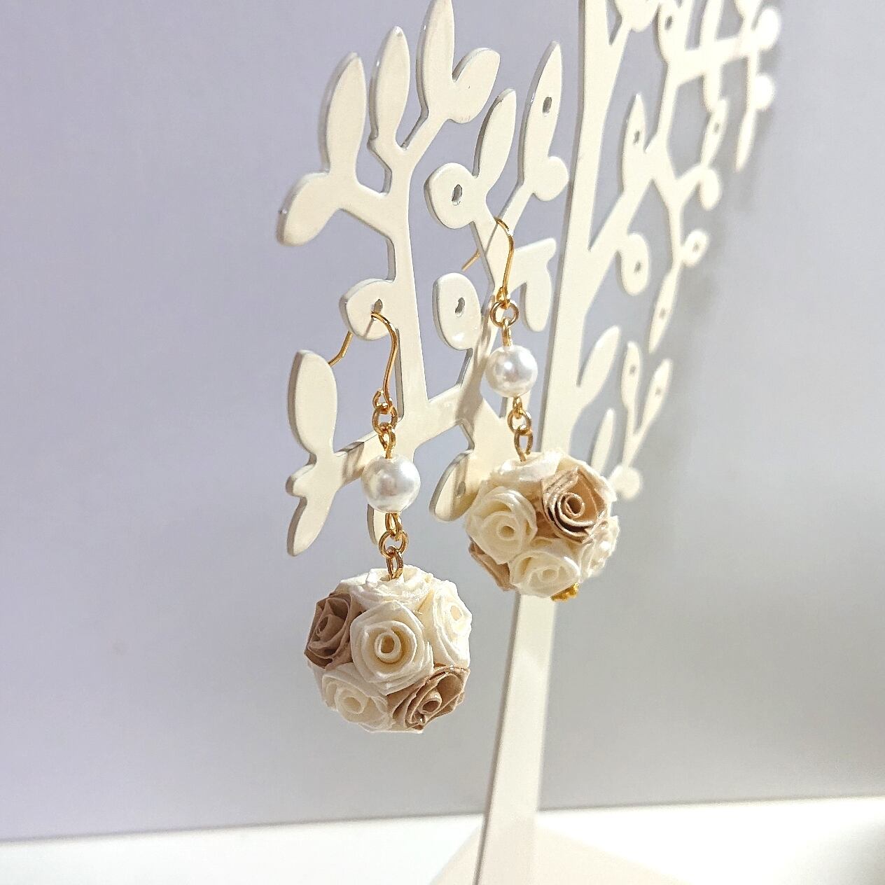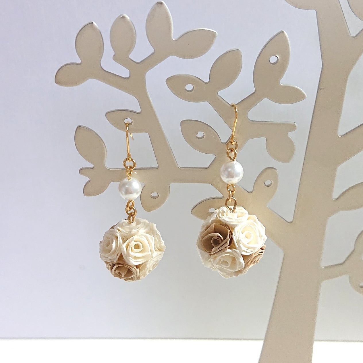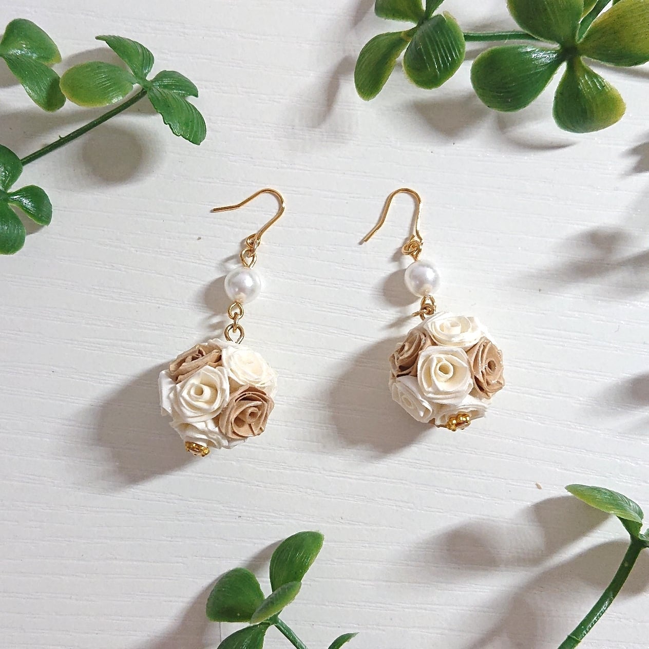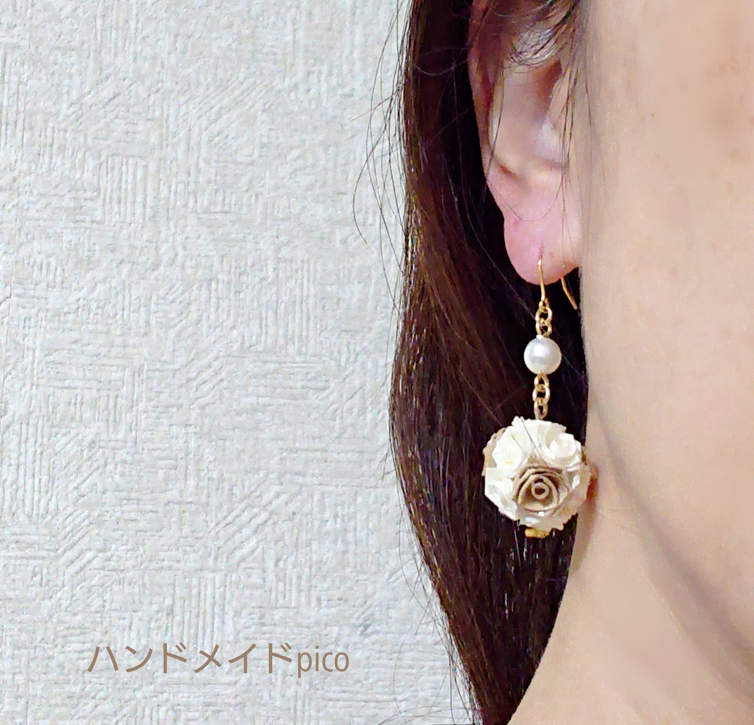 ロザフィで作った、球体ローズのピアス(イヤリング)です。