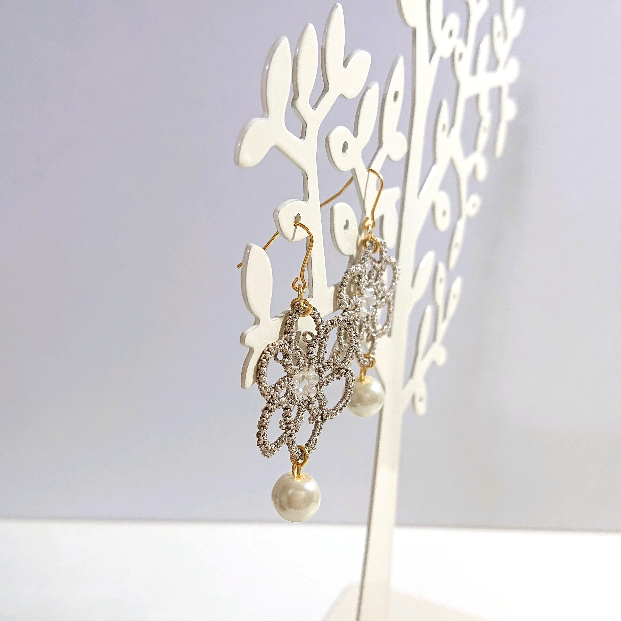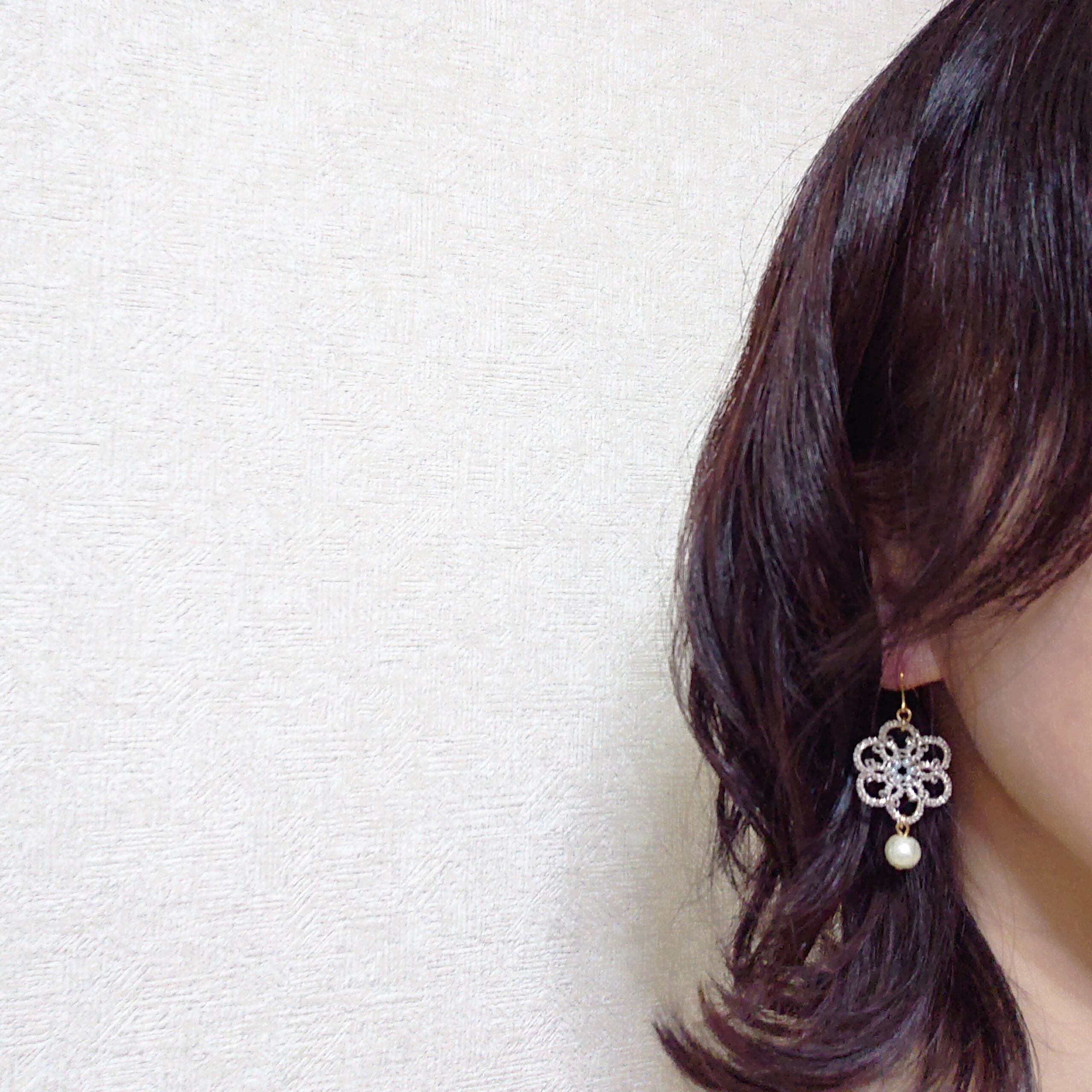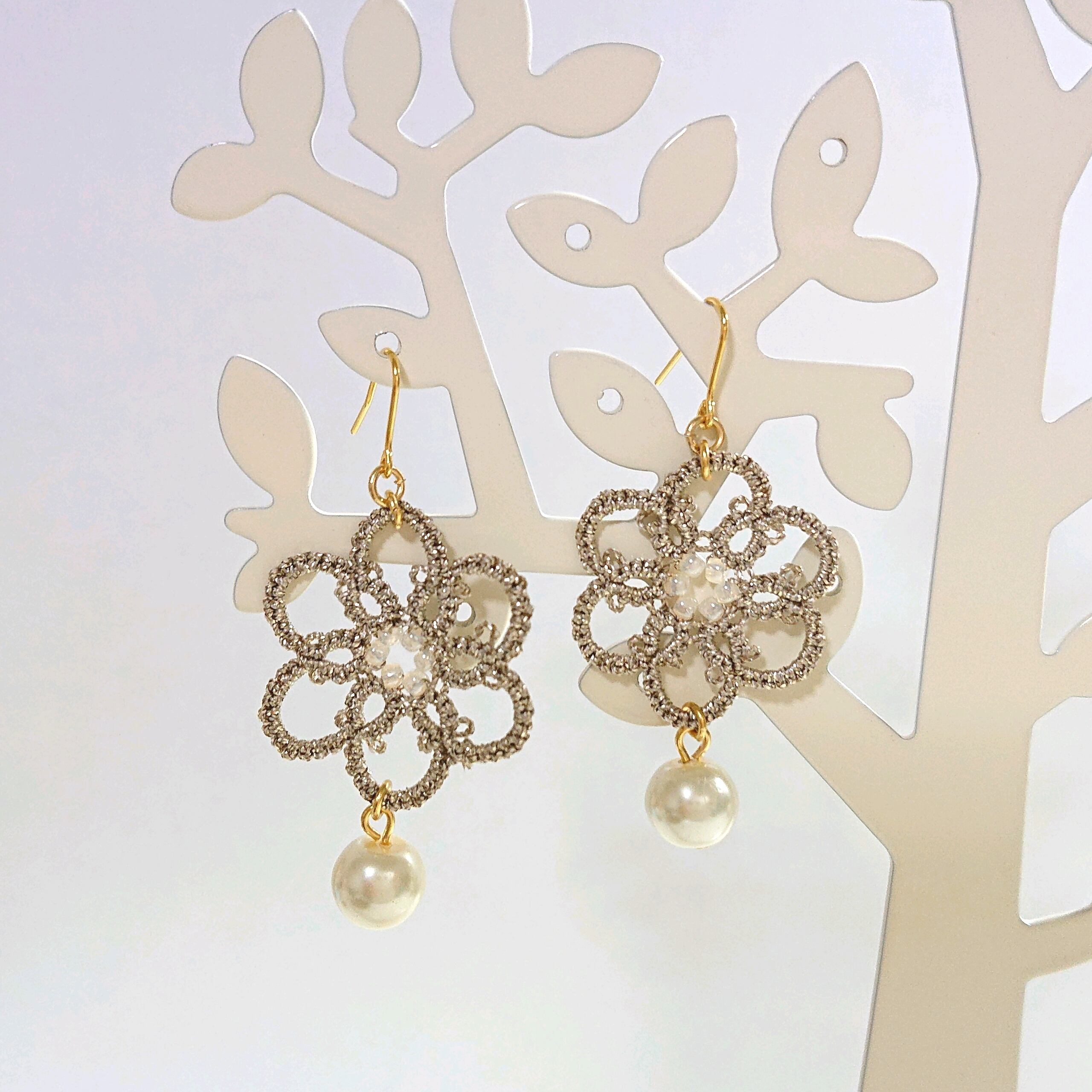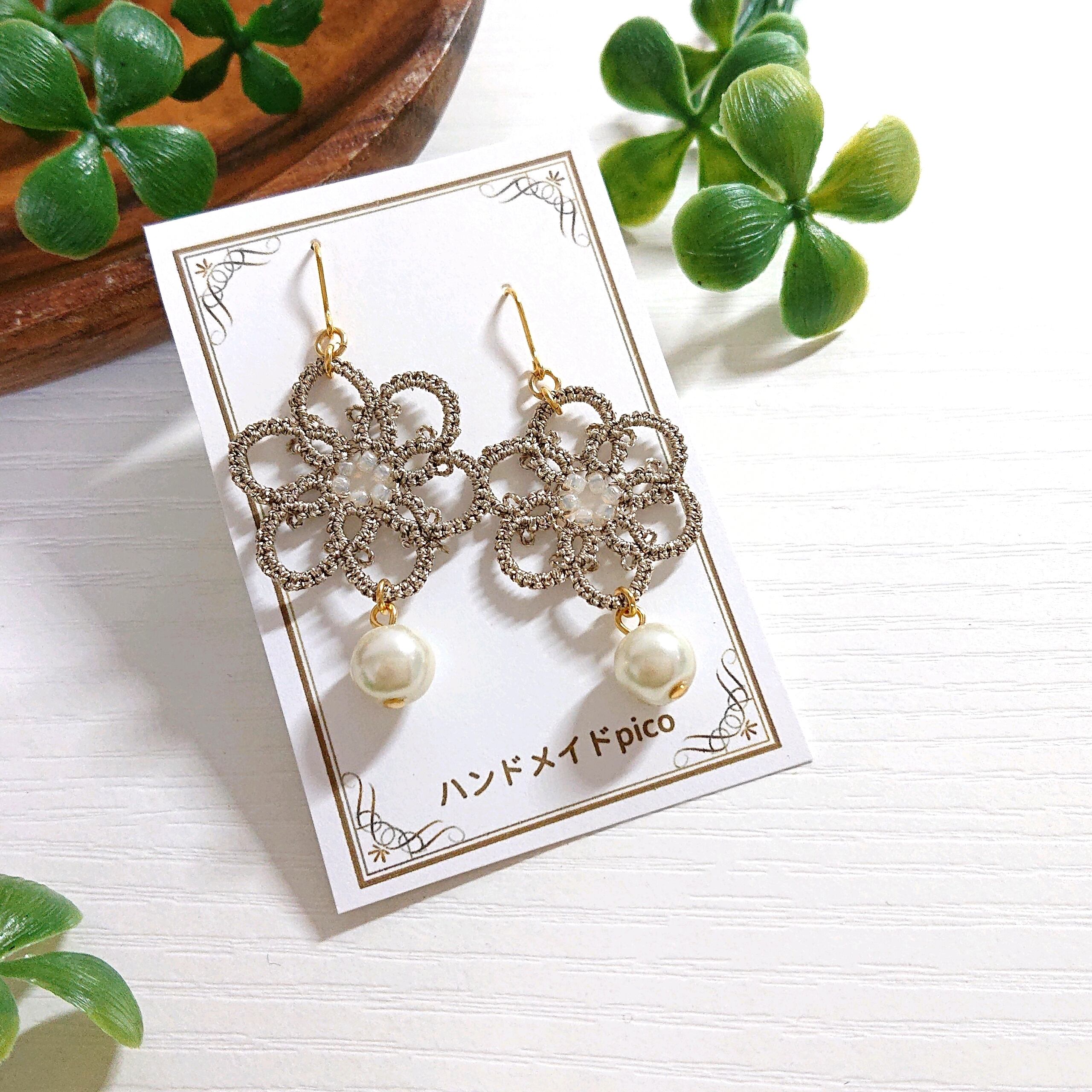 レース糸(40番)・丸小ビーズ・樹脂パール・金具