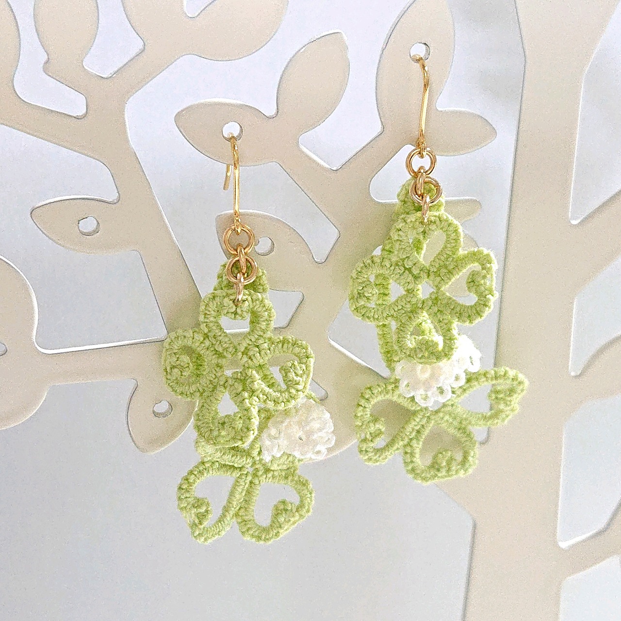 レース糸を使用しタティングレースで1つ1つ編んでます
