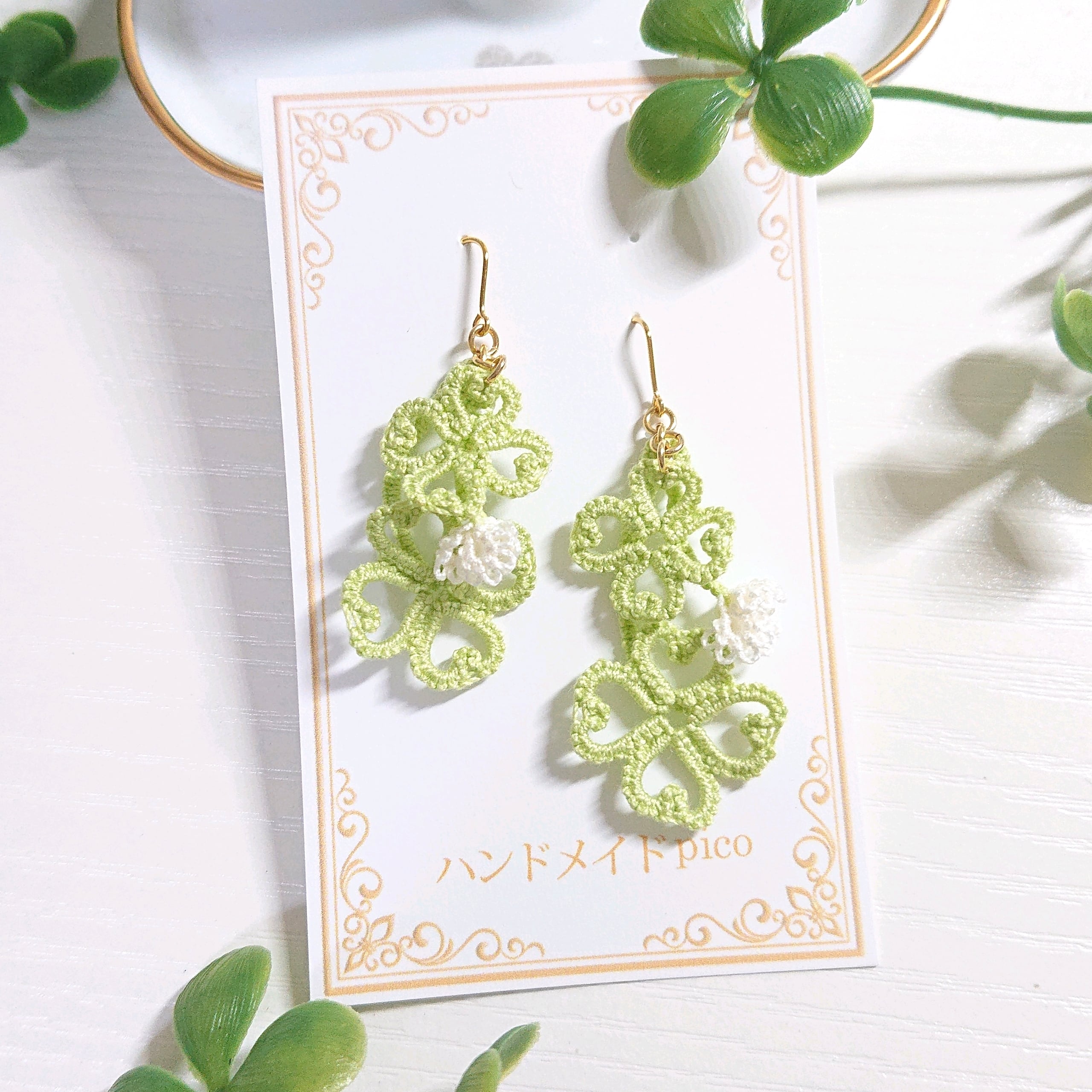四つ葉のクローバーをピアス(イヤリング)にしてみました