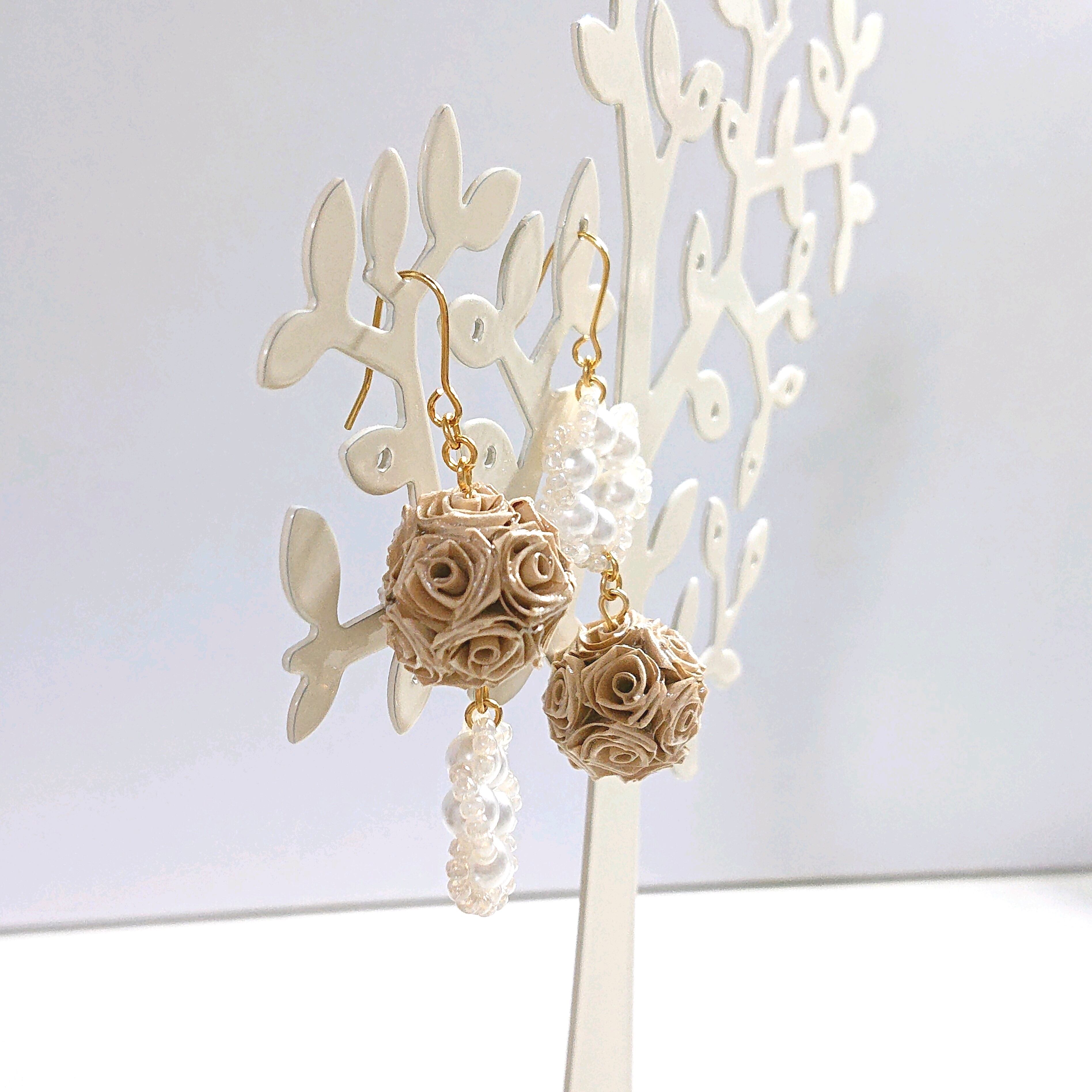 樹脂パールと丸小ビーズでつくったお花モチーフを