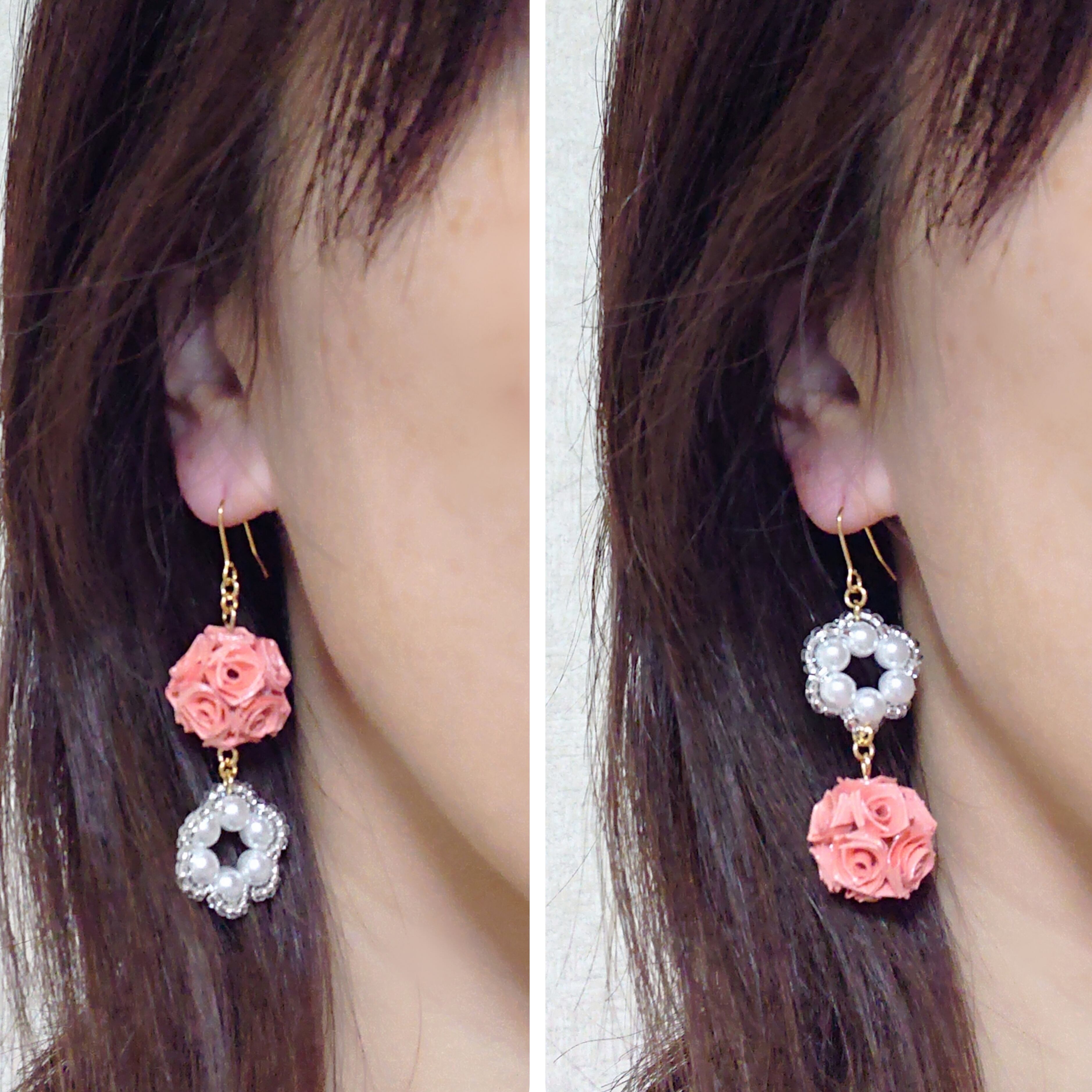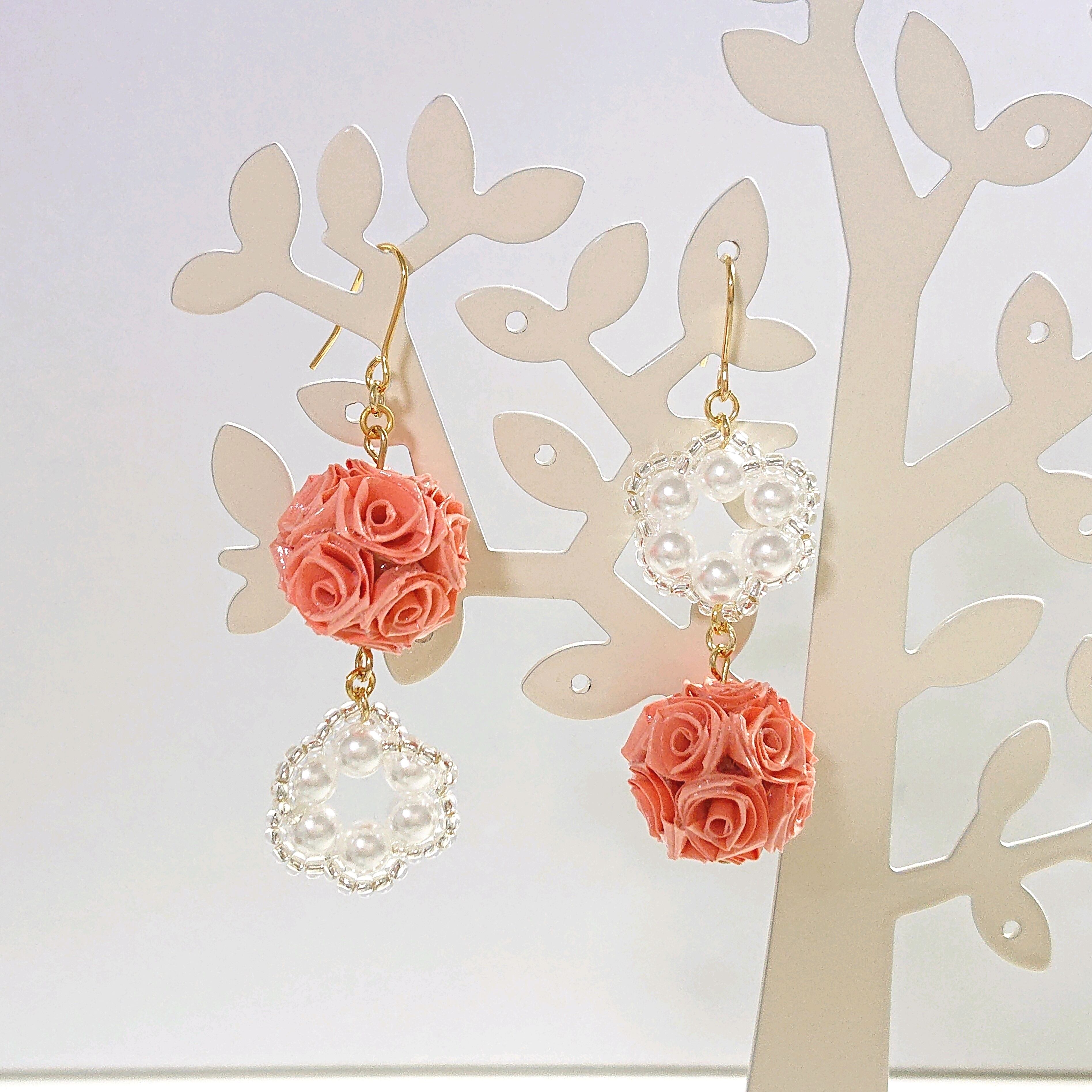 樹脂パールと丸小ビーズでつくったお花モチーフを
