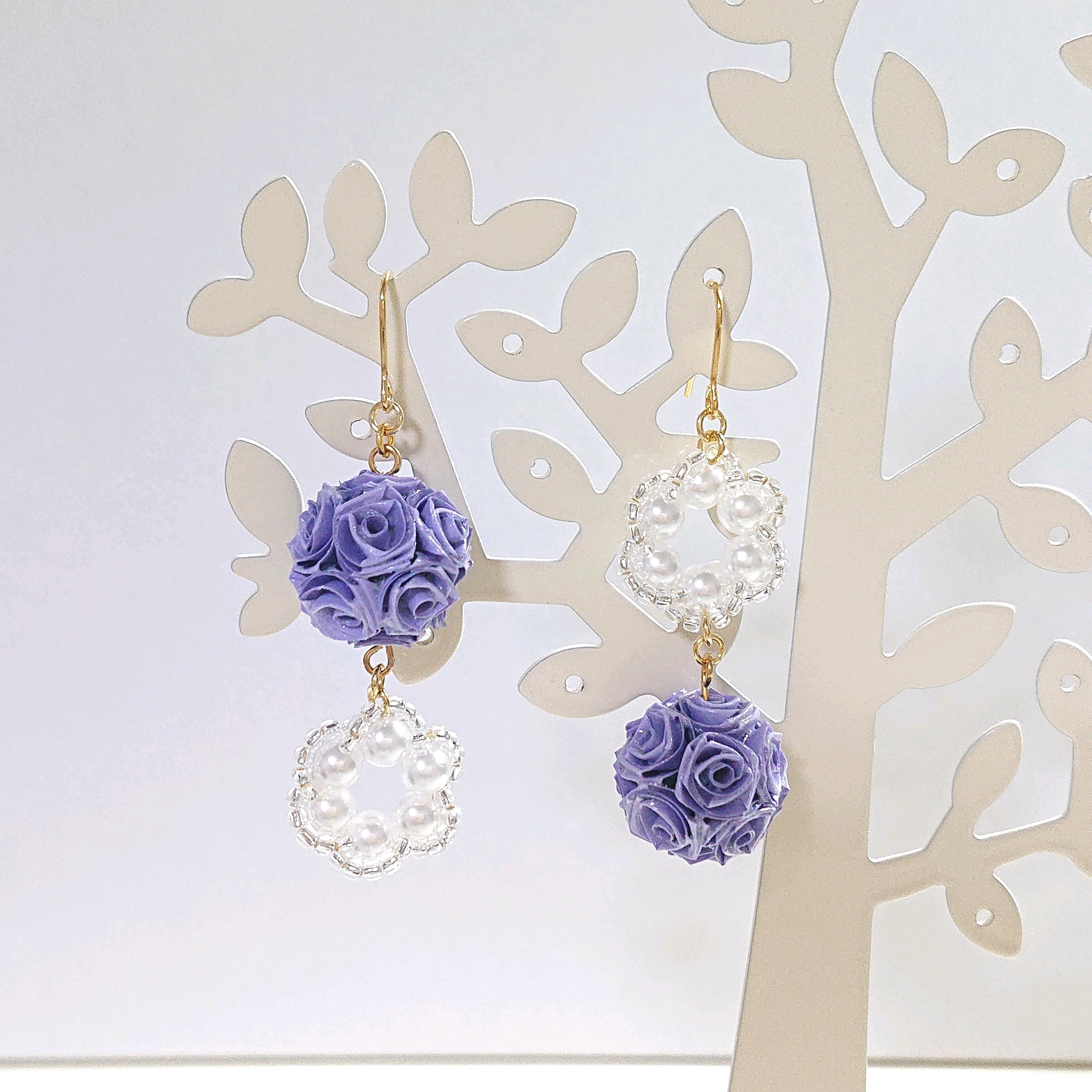 樹脂パールと丸小ビーズでつくったお花モチーフを