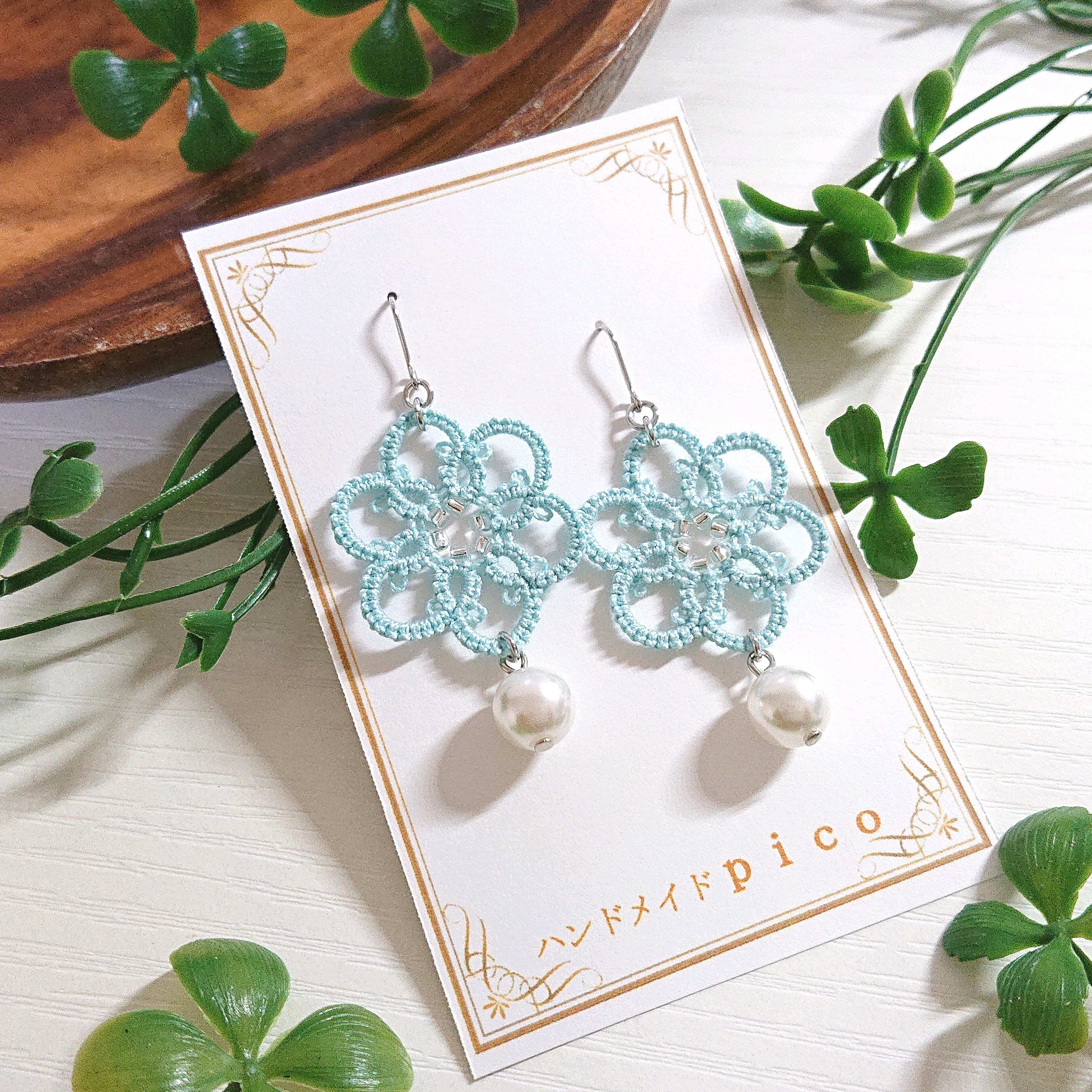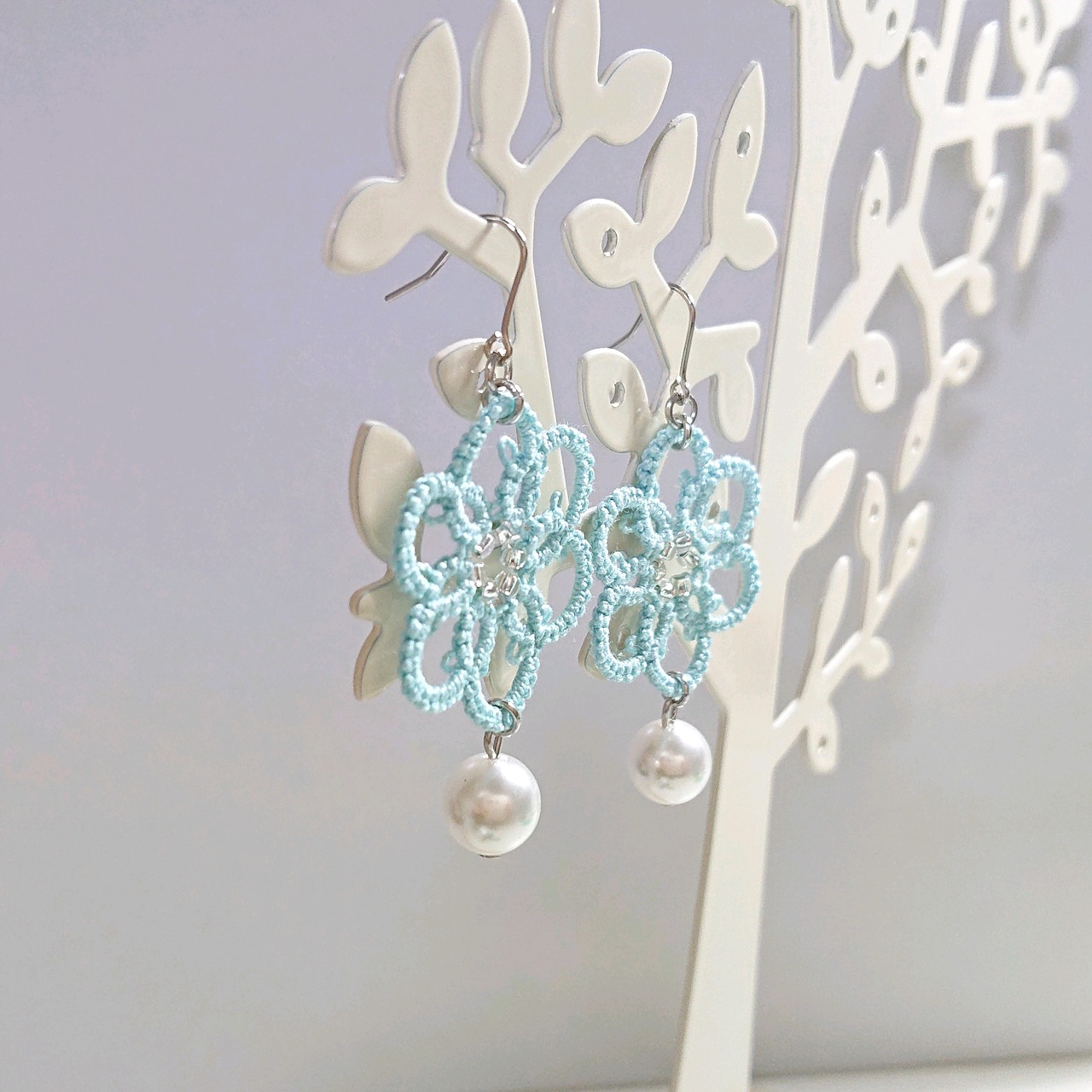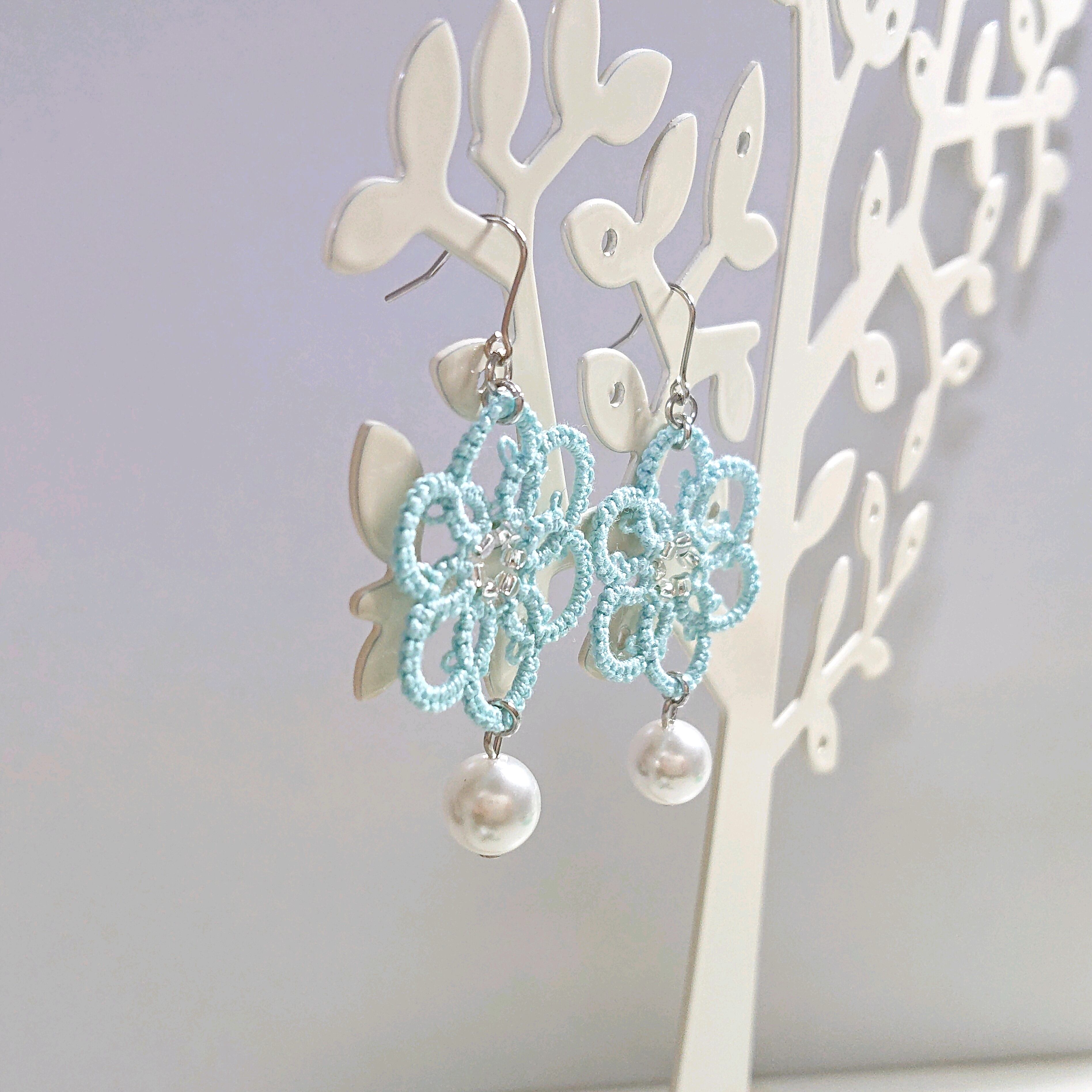 レース糸(40番)・丸小ビーズ・樹脂パール・金具