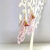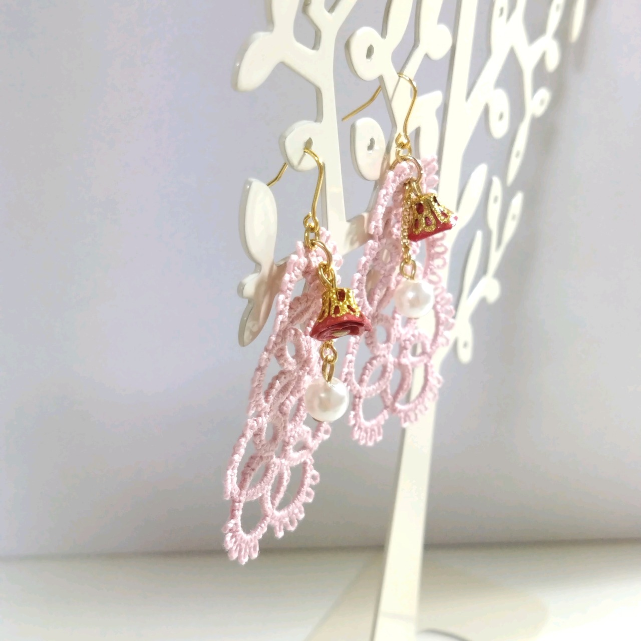 水色のレース糸を使用し、タティングレースで雫モチーフを編んでます