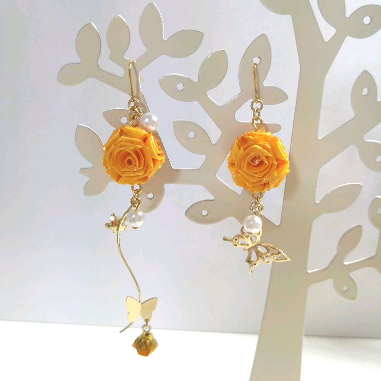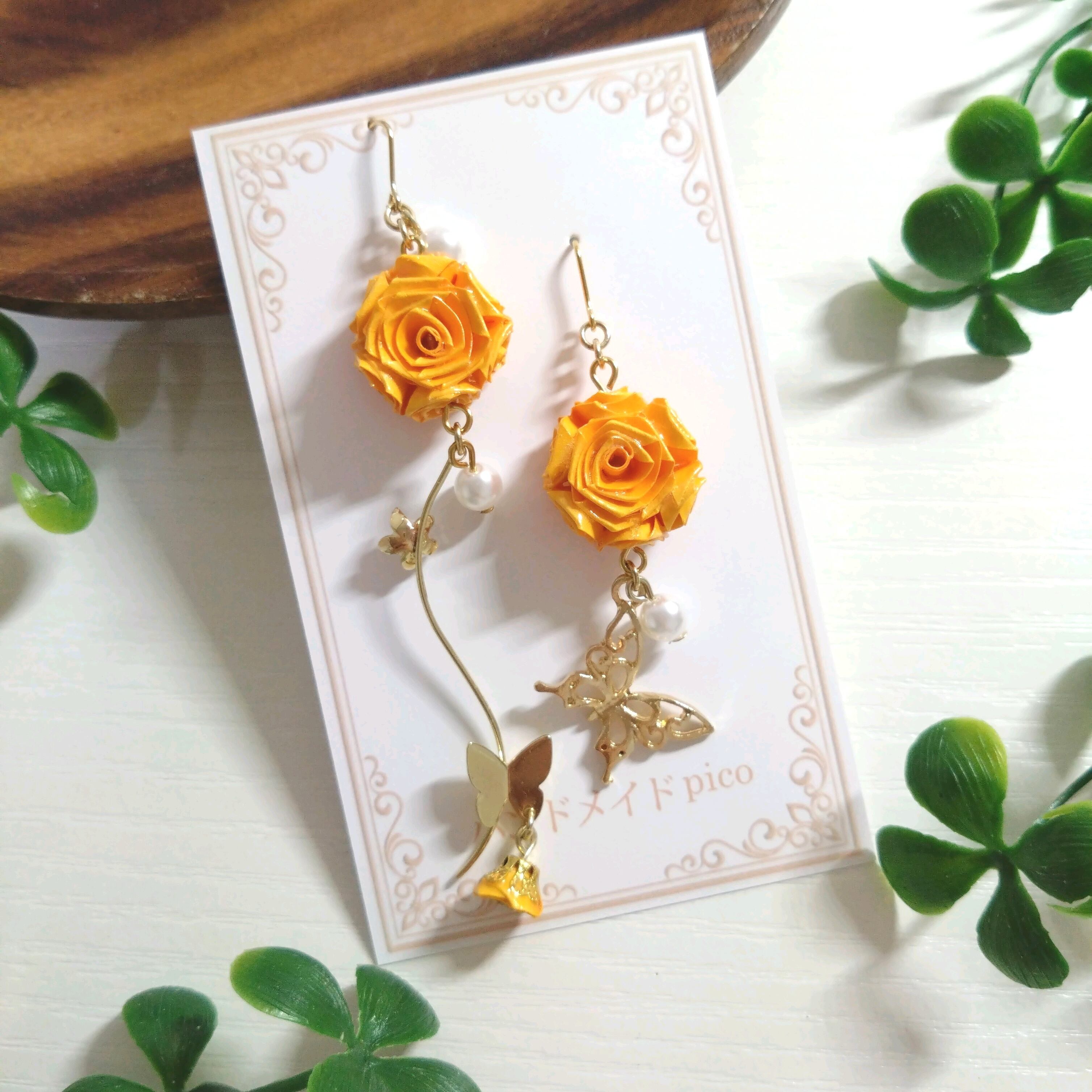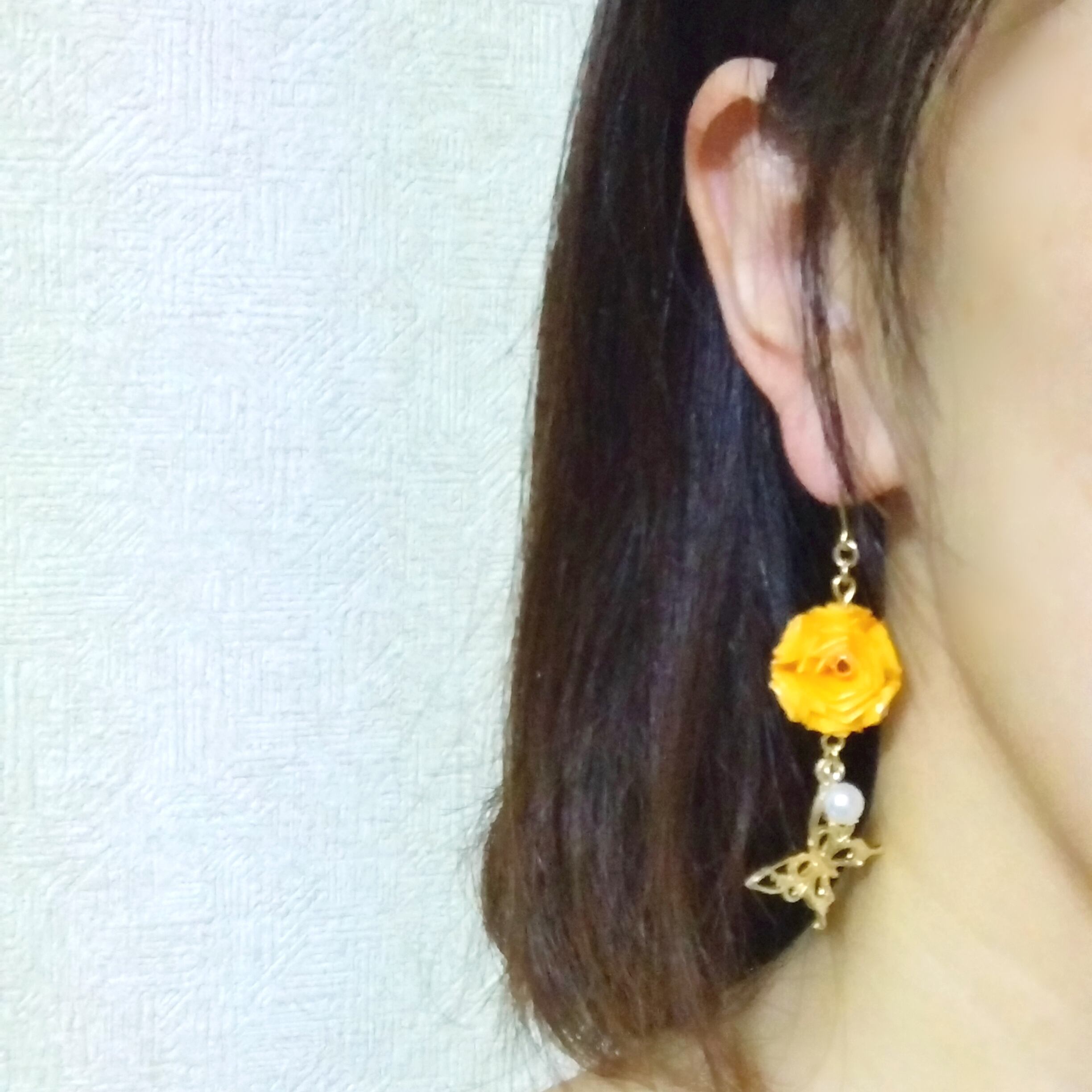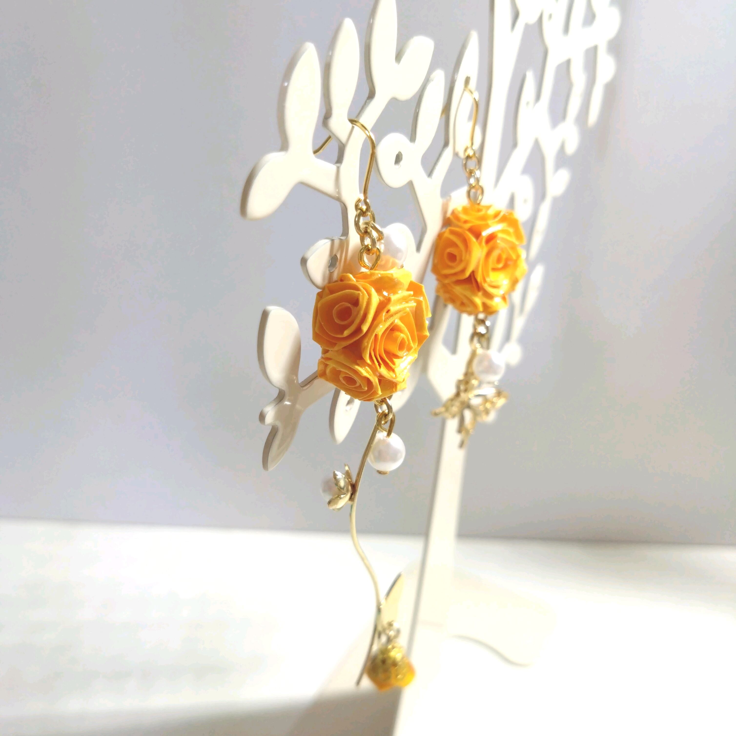 バタフライroseピアス(イヤリング)オレンジ