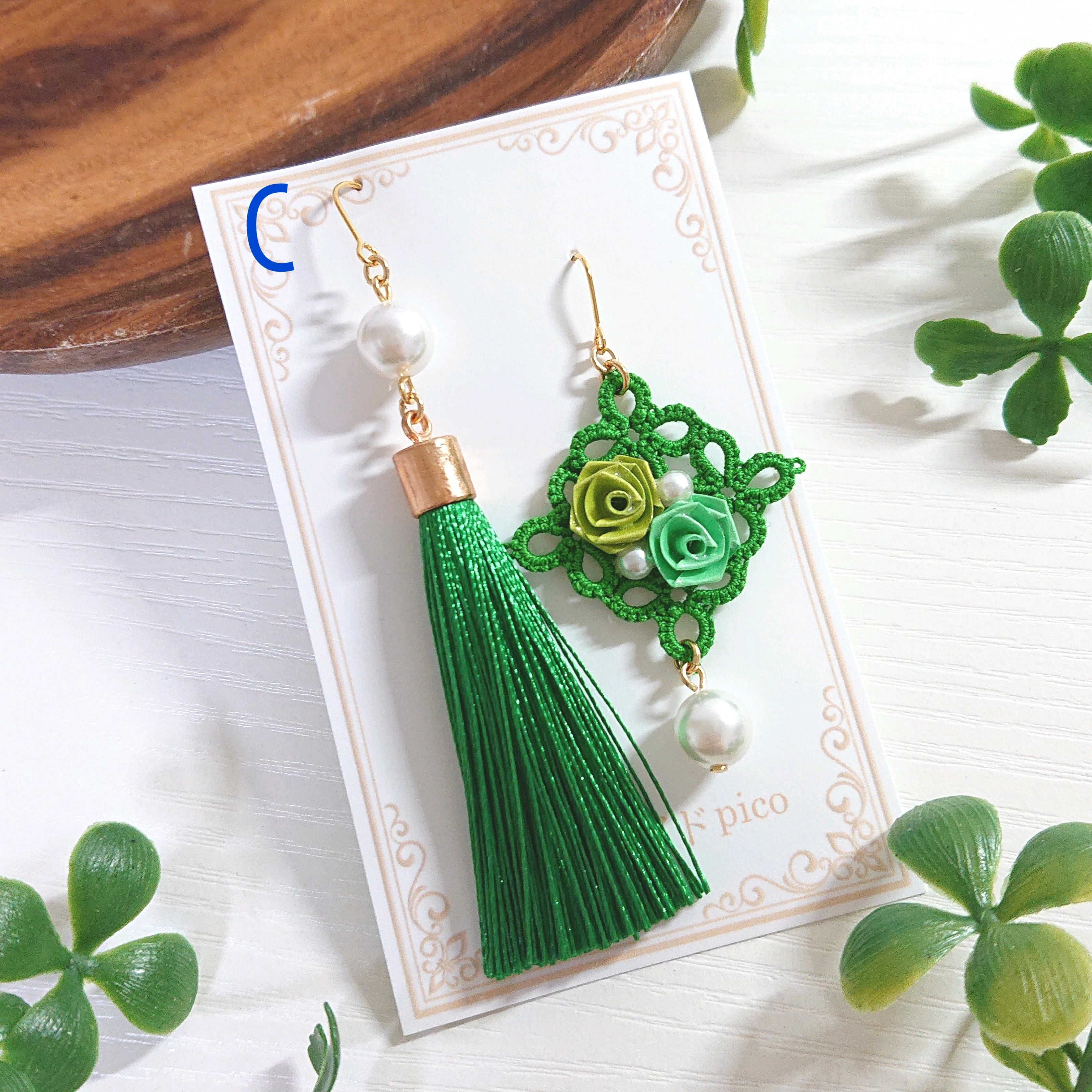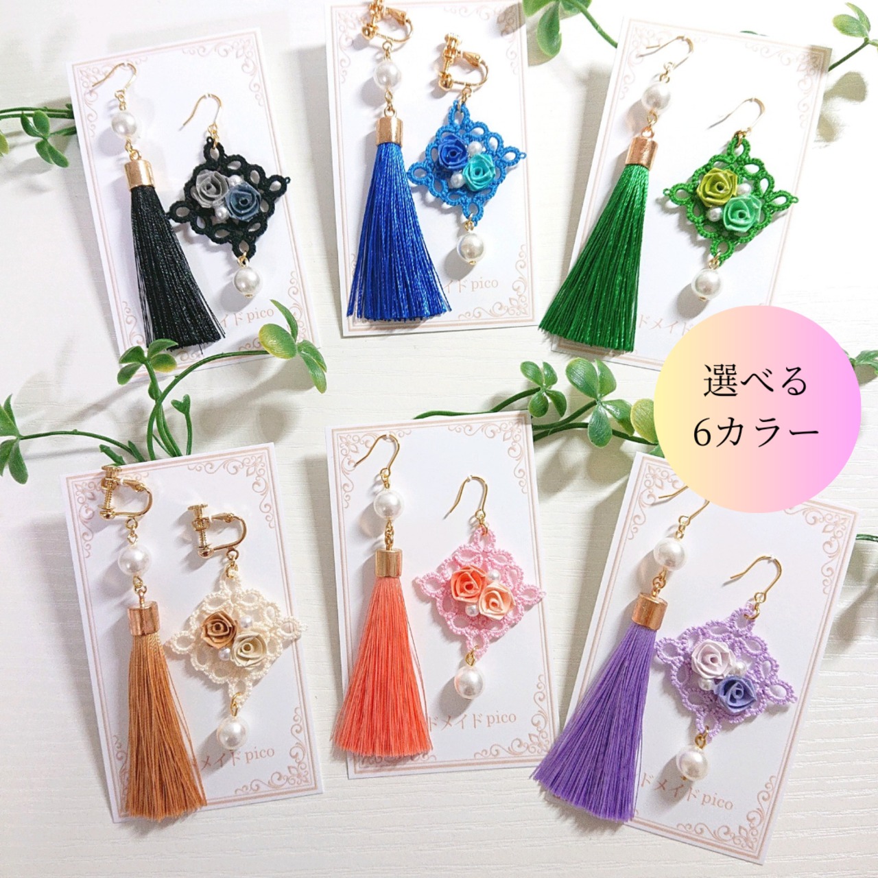 ふんわり揺れるタッセルと艶やかな樹脂パールを組み合わせた